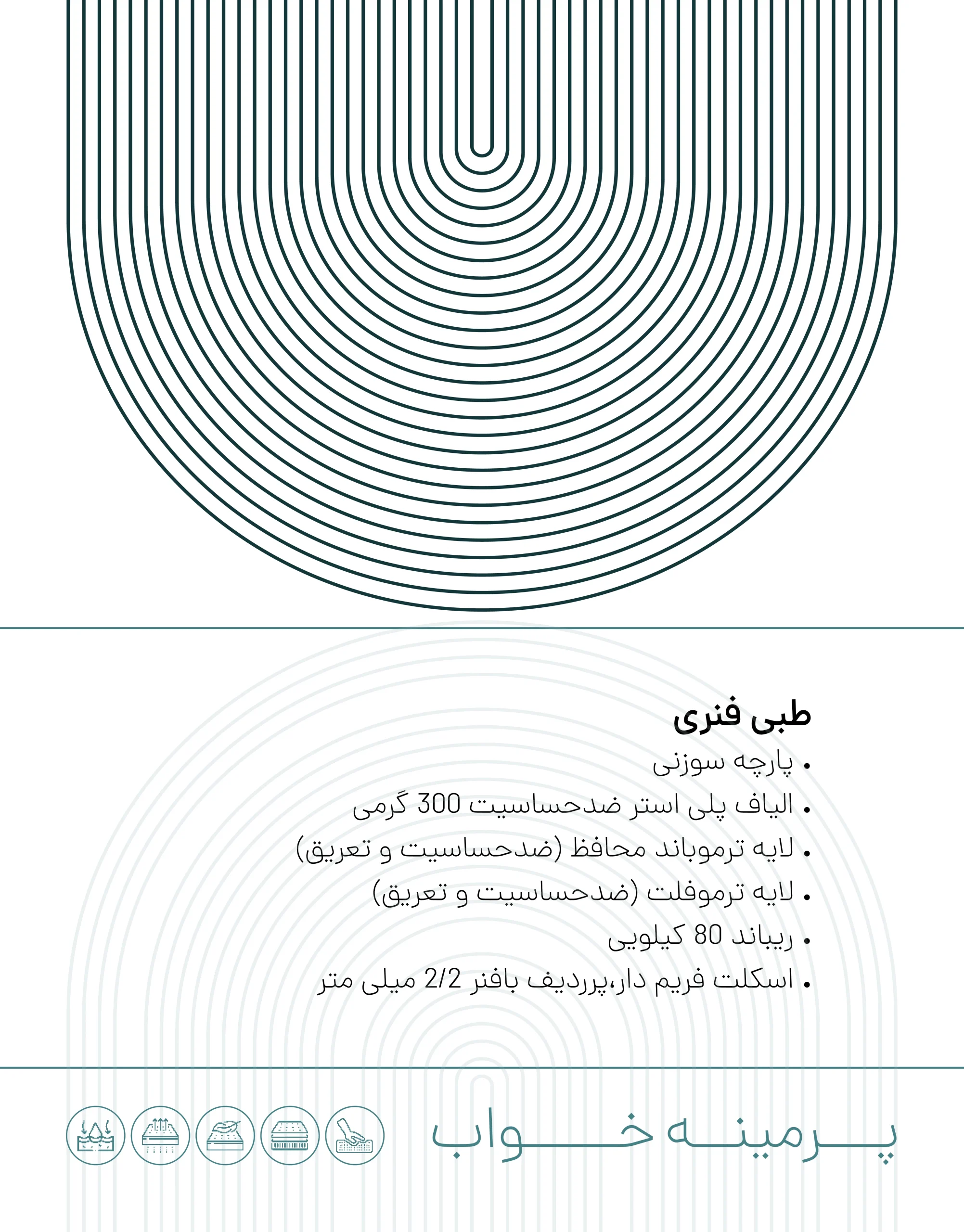| ابعاد | نوجوان 80*180*24, تک نفره (استاندارد) 90*200*24, تک نفره (بزرگ) 120*200*24, دونفره (استاندارد) 160*200*24, دونفره (بزرگ) 180*200*24 |
