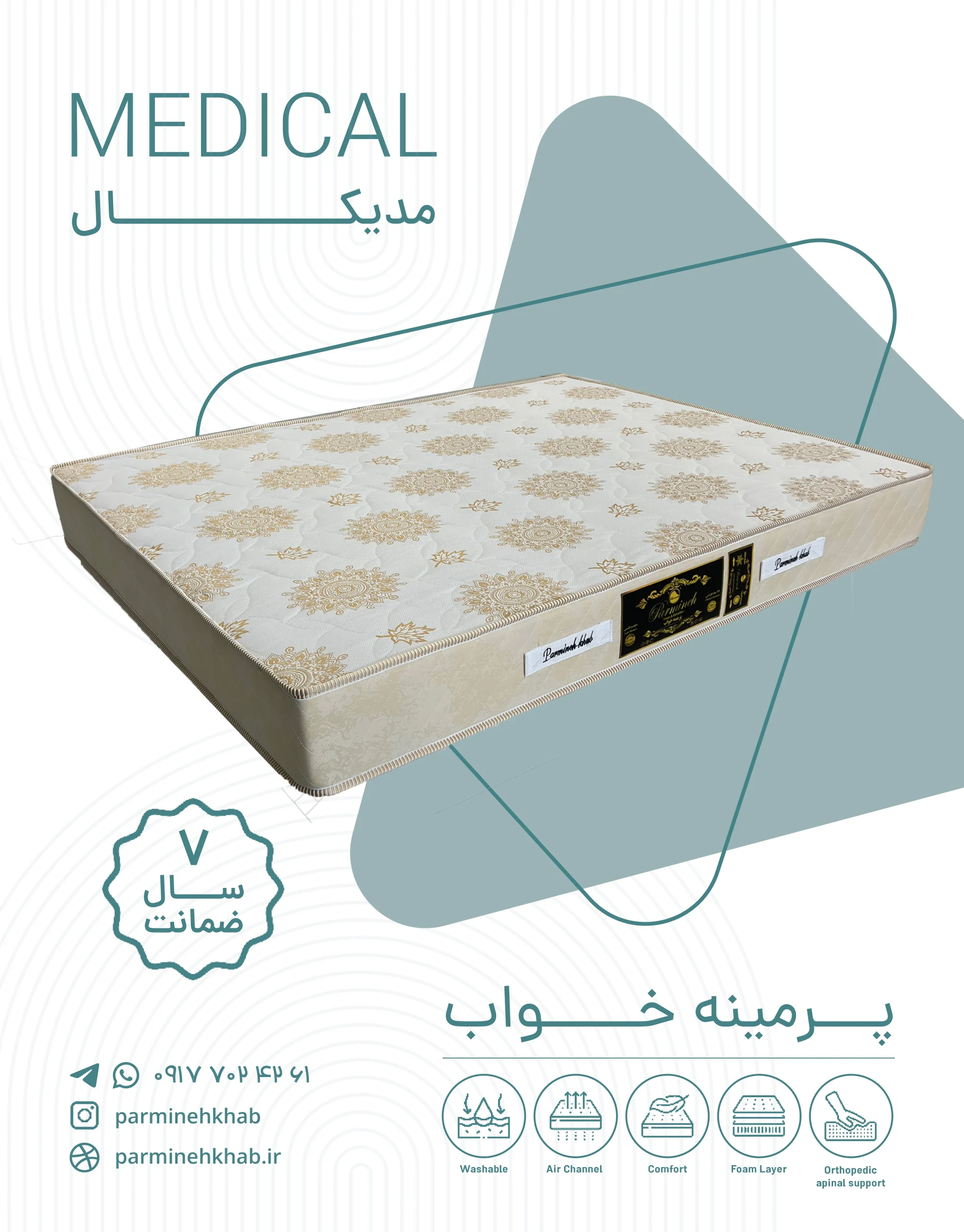 • ابعاد: تک نفره (استاندارد) 90*200*22, تک نفره (بزرگ) 120*200*22, دونفره (استاندارد) 160*200*22, دونفره (بزرگ) 180*200*22
